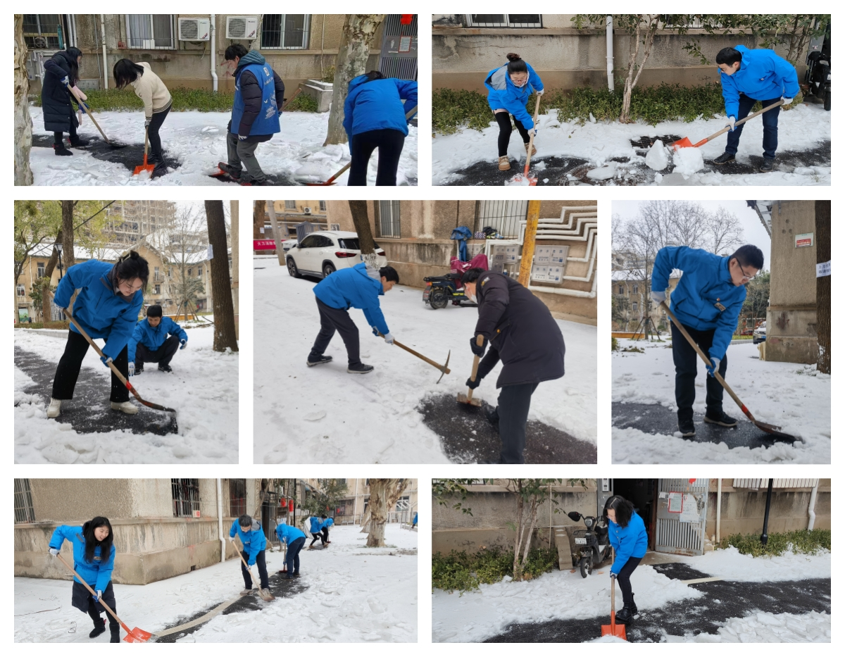 中科水生黨員干部職工不畏嚴(yán)寒,奮力清掃積雪。大家揮舞著鐵鍬和鎬頭,齊心協(xié)力,相互配合,一點(diǎn)點(diǎn)地將路面積雪和冰層鏟除干凈,有條不紊地為老舊小區(qū)多個(gè)門棟單元路面積雪清理干凈,鏟出一條條“暖心通道”。