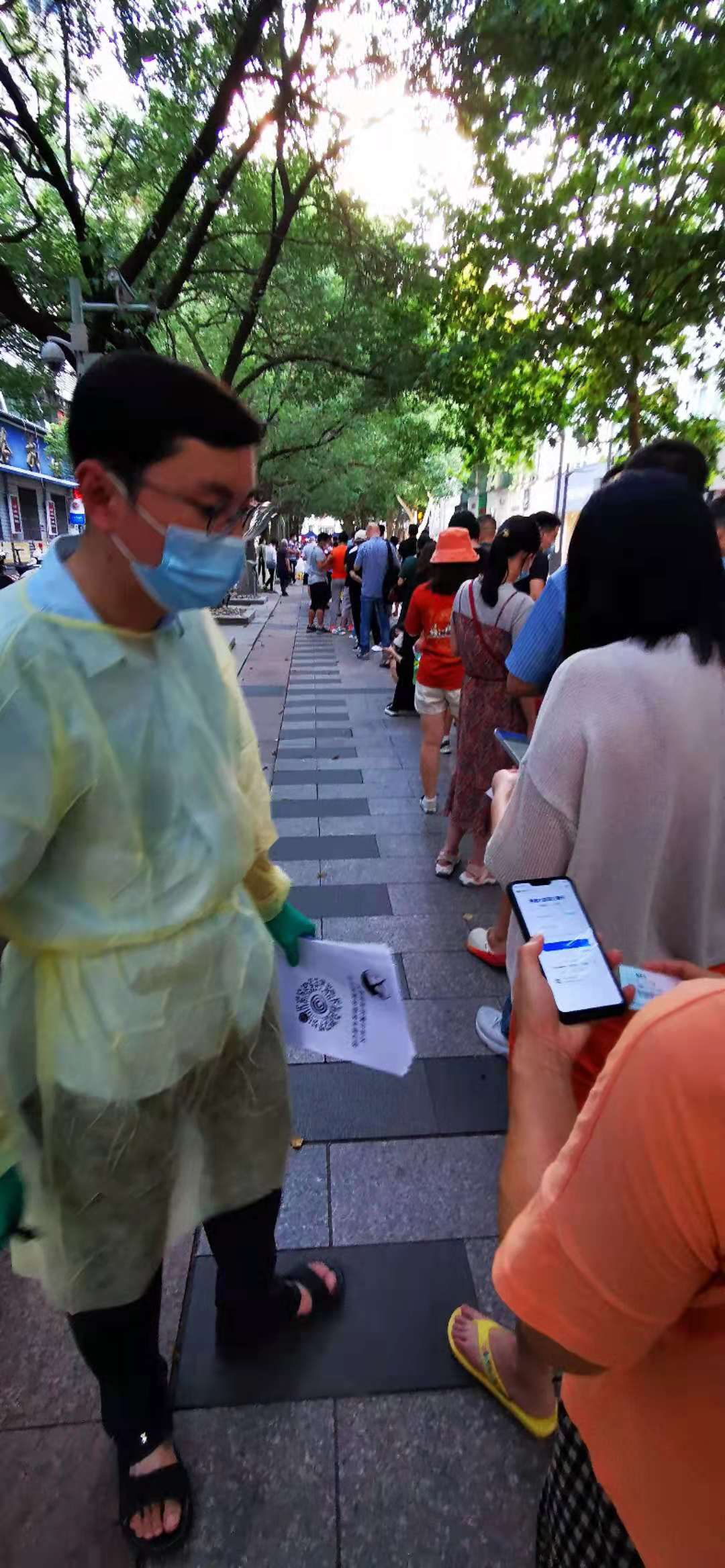 4日下午6時(shí),前來放鷹臺(tái)社區(qū)參加核酸檢測的居民排成了長隊(duì),下沉黨員尹健、夏成茂、路曉紅、曾云云,積極向黨組織靠攏的同志段昌兵、王倩倩手持二維碼,分別走到等候檢測的居民身邊,耐心指導(dǎo)居民逐一掃碼錄入信息。悶熱的天氣下,下沉黨員們見活就干,衣服很快全部汗?jié)瘢廊粓?jiān)守崗位,全力參與檢測工作直至晚上10時(shí),受到了社區(qū)和現(xiàn)場群眾的一致好評(píng)。