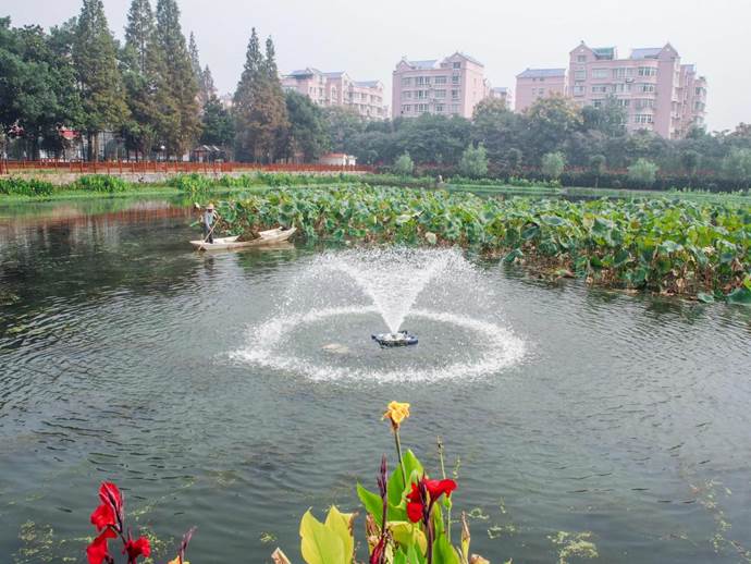 三、沾天湖施工的工程量也已基本完成,但沉水植物種植效果有待進一步提高,挺水植物與浮葉植物品質(zhì)應(yīng)進一步優(yōu)化。在改善水質(zhì)的前提下,提高景觀效果與觀賞性,人工浮島調(diào)整布置區(qū)域,要做到功能性與景觀效果并舉。