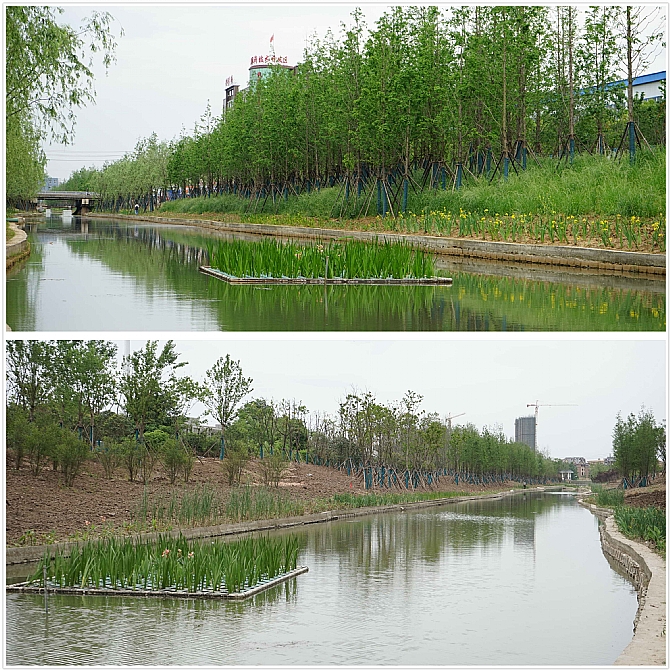 項(xiàng)目簡(jiǎn)介:紗帽河全長(zhǎng)1.55km,泥湖河全長(zhǎng)1.90km。治理前,紗帽河、泥湖河沿岸部分工業(yè)污水與生活污水管道接入雨水系統(tǒng),污水直接隨雨水排入河,嚴(yán)重污染了河道水體,河道生態(tài)遭到嚴(yán)重破壞,河岸護(hù)坡?lián)p壞嚴(yán)重。通過(guò)水生植物種植、礫石床鋪設(shè)、溢流雨水處理系統(tǒng)構(gòu)建、人工水草布設(shè)安裝、曝氣充氧設(shè)施安裝等措施,使紗帽河、泥湖河主要水質(zhì)指標(biāo)透明度、溶解氧、氧化還原電位、氨氮低于國(guó)家黑臭水平標(biāo)準(zhǔn)閾值,成為一條具有自?xún)裟芰Φ暮拥琅c充滿(mǎn)生機(jī)的生態(tài)廊道,達(dá)到了“水清、水活、景美、路暢”生態(tài)與景觀兼顧的治理目標(biāo)。