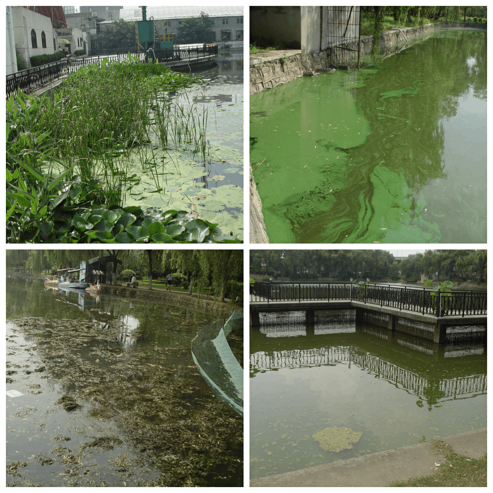 公園建成前,四美塘是一個垃圾集散地和工地廢墟,湖塘水質(zhì)呈墨色,散發(fā)著臭氣,是蚊蠅的孳生地、城市環(huán)境建設(shè)的死角。工程實施前,2009年四美塘為劣Ⅴ類地表水質(zhì)(GB3838-2002),氮、磷污染嚴(yán)重,重度富營養(yǎng),藍藻水華嚴(yán)重。