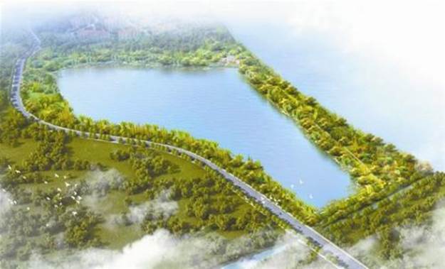 按照原設計方案,公園入口是建一幢鋼結(jié)構(gòu)管理用房及有18個車位的停車場。環(huán)湖主干道原設計為機動車道,湖上,有架空棧橋、親水平臺、湖心亭、垂釣平臺等多種休閑設施。