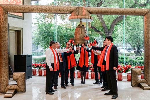 公司董事長劉劍彤代表公司敲響了財富的寶鐘,在悠遠渾厚的敲鑼聲中,宣告中科水生掛牌儀式禮成,正式成為一家公眾公司。自此,中科水生邁入了一個全新的階段,開始了全新的征程。