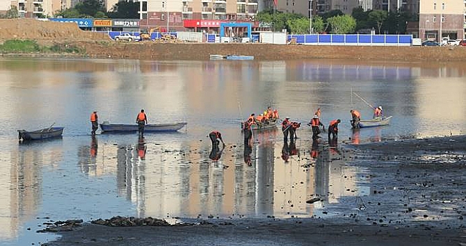 長江日?qǐng)?bào)融媒體4月19日訊?。丛?8日,武漢開發(fā)區(qū)(漢南區(qū))北太子湖上漂著約十艘小船,近百名工人有的坐在船上,有的站在水里,把一株株水生植物的根莖插入湖底,有如“插秧”。 “我們正是通過種植水生植物,來凈化水質(zhì)?!蔽錆h開發(fā)區(qū)(漢南區(qū))水務(wù)局相關(guān)負(fù)責(zé)人介紹,工人們?cè)匀胨械?,是苦草、黑藻等植物,這些水生植物就像海綿一樣,在生長過程中,吸收水體中的營養(yǎng)鹽,如氮、磷等。等植物長起來后,再收割起來,運(yùn)走處理。這樣,水體就得到了凈化。 據(jù)悉,一個(gè)工人一天可插200平米左右。從3月份開始作業(yè),目前已經(jīng)栽