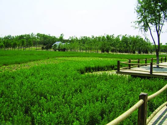 本項目濕地建造的目的是通過對清河污水處理廠尾水進行深度處理,對公園及其人工湖進行生態(tài)補水,以及其水系實施循環(huán)凈化,同時營造濕地自然景觀。濕地類型因地制宜的選取了側向水平潛流構建濕地、豎向上升流構建濕地以及水平潛流、上升復合構建濕地的組合工藝。該濕地建成后,人工湖湖水保持在地表水Ⅲ類。